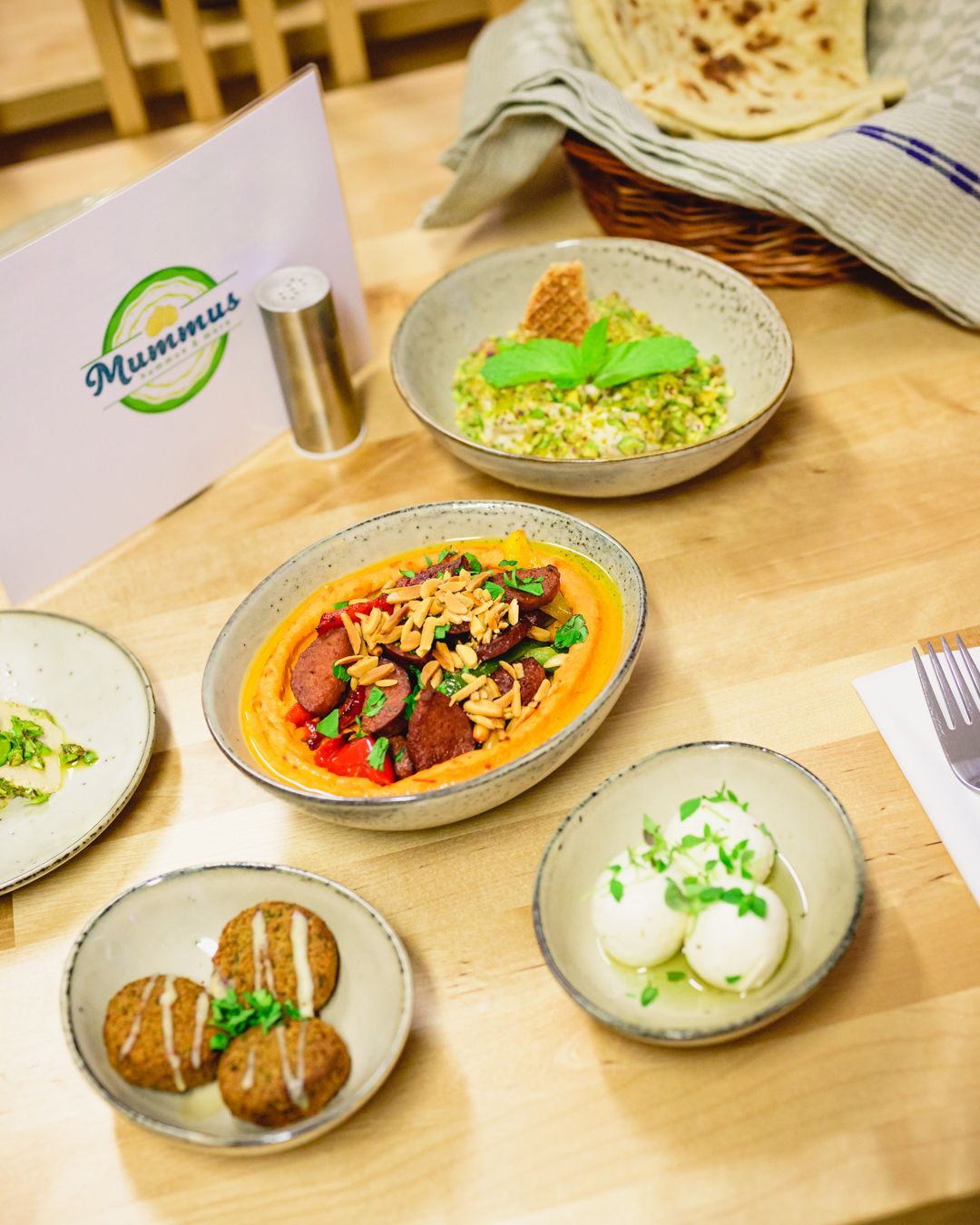 Hummus is a savory, creamy, and yummy middle eastern dip. Hummus is traditionally made from mashed chickpeas mixed with fresh lemon juice, minced garlic, and a sesame paste called tahini. Hummus has become incredibly popular as a healthy dip or spread. At Mummus, we decided to take hummus to the next level!